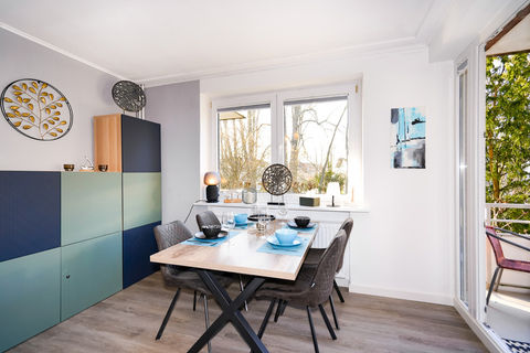 Von dort aus gelangen sie auf den Balkon, wo sie je nach Jahreszeit auch den Blick auf die Ostsee genießen können.